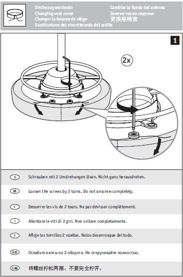 Zum Wechsel des Bezugs (Husse) am S1-Stuhl liegt eine detaillierte Montageanleitung bei. Diese führt Sie Schritt für Schritt durch den Vorgang und zeigt, wie der Bezug fachgerecht entfernt und ersetzt wird.
