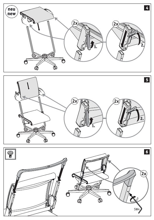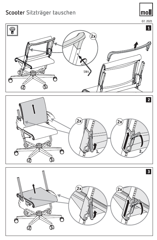 Mit der folgenden Anleitung können Sie den Sitzträger einfach ausbauen und austauschen. (Bild Montageanleitung)